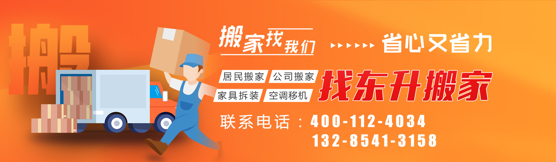 濟南東升(sheng)搬家有限公司以“熱情(qing)、周到(dao)、快捷、安全”為宗旨,用最熱情(qing)周到(dao)的(de)服(fu)務(wu)得(de)到(dao)客(ke)(ke)戶信任;用合理的(de)價格,不亂收(shou)費,是對(dui)客(ke)(ke)戶基(ji)本的(de)承諾(nuo)。客(ke)(ke)戶的(de)滿意,是我們(men)的(de)成功!